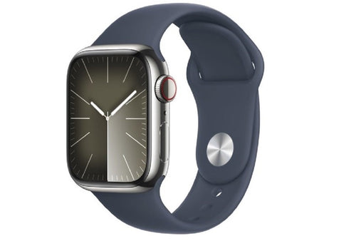 Apple Watch Series 9 GPS + Cellular 45mm Silver Aluminium Case with Storm Blue Sport Band - M/L